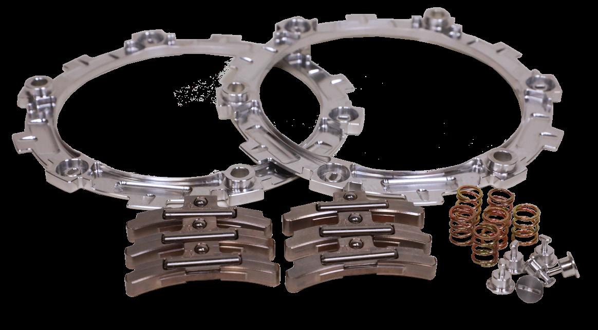 A new coil spring pressure plate offers tunability to increase spring pressure over stock. This system allows drivers to operate the manual transmission with ease, providing smoother engagement at low speed. The centrifugal action of the clutch eliminates stalling and improves acceleration.