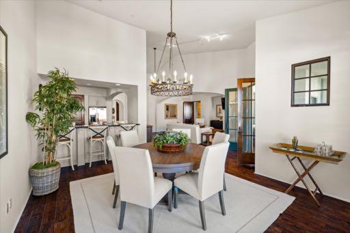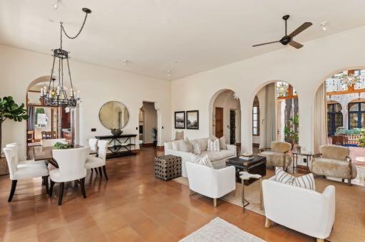 Vibrant luxury at El Andaluz! Masterfully designed by award-winning architect, Jeff Shelton, this iconic development features playful lines, intricate tile work, alluring wrought iron details and an envious open-air courtyard. This chic downtown condo is a spacious 2,231 s.f., with city and mountain views from the magniOcent great room, kitchen and main patio. Completing the Poorplan is an impressive primary suite, family room, large foyer, 1.5 baths and even an ofOce. The soaring 12' ceilings capitalize on the incredible natural light that highlights the architecture and whimsical design. Abundant windows, beautiful arches, three patios, generous storage, a private elevator, and a 2 car garage complete this artfully designed city retreat where attention to detail and construction