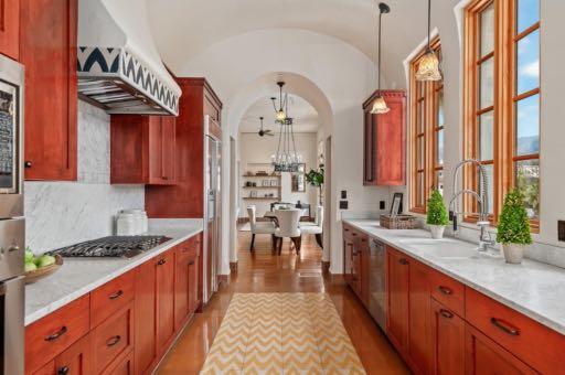 Elegant, sophisticated, Moroccan modern: El Andaluz is a highly admired home in Santa Barbara. A Jeff Shelton original: whimsical tiles, creative iron work & an impeccable blend of architecture, art & luxury. Over 2200 ft. of single level living with a sizable outdoor entertainment patio, heated & covered for yearlong use. Be transported by private in-home elevator to your 2-car garage. Relax in 2 lavish bedrooms, 2.5 bathrooms, & an open living-dining-kitchen area. Custom ofOce, storage, laundry & a built-in safe add to the convenience of life. With radiant tile heating & incredible mountain views, your home promises to impress all. Ideally located downtown near state street's open-air promenade, & just 5 blocks to the water, one skilled procurer will get to call this masterpiece home.