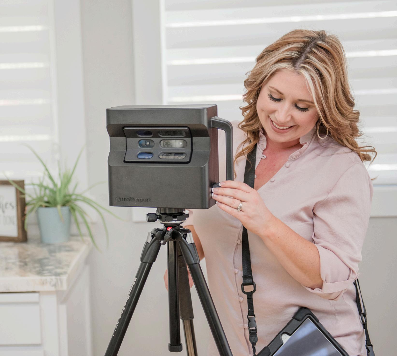 Pictured: Rachael using the Matterport to create a virtual 3-D tour of a home