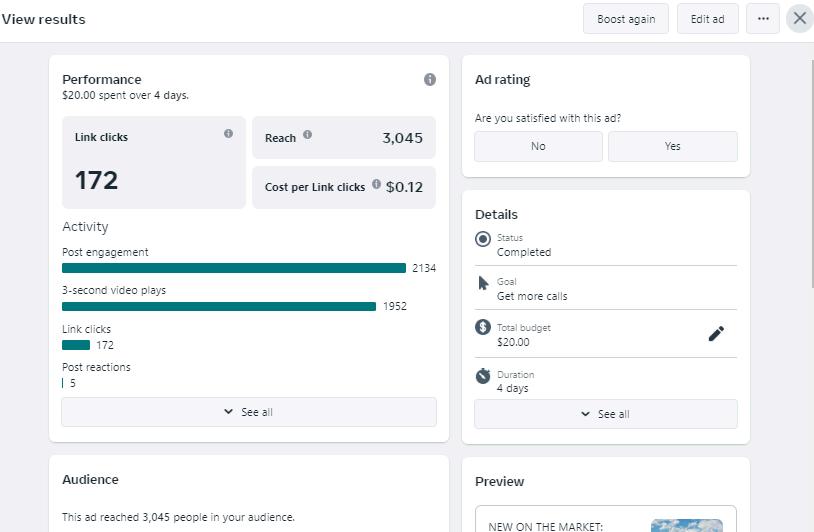 Custom marketing materials are created for each listing specifically for our social media outlets Through Instagram and Facebook, we are able to boost these posts to create an ad for your property and expand the reach & views of your listing beyond our current friends/followers. We carefully track the performance and engagement of each ad; including how many "clicks" to your property's custom webpage receives and how many users either shared, viewed, or saved your listing.
