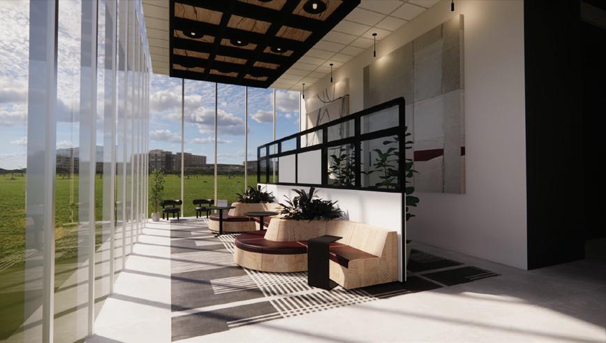 THE FLOOR PLAN IS CENTERED AROUND A CENTRAL BAR, WITH DINING SEATING TUCKED INTO NOOKS AND SHELTERED BY WALLS FOR OPTIMUM PRIVACY AND COMFORT.