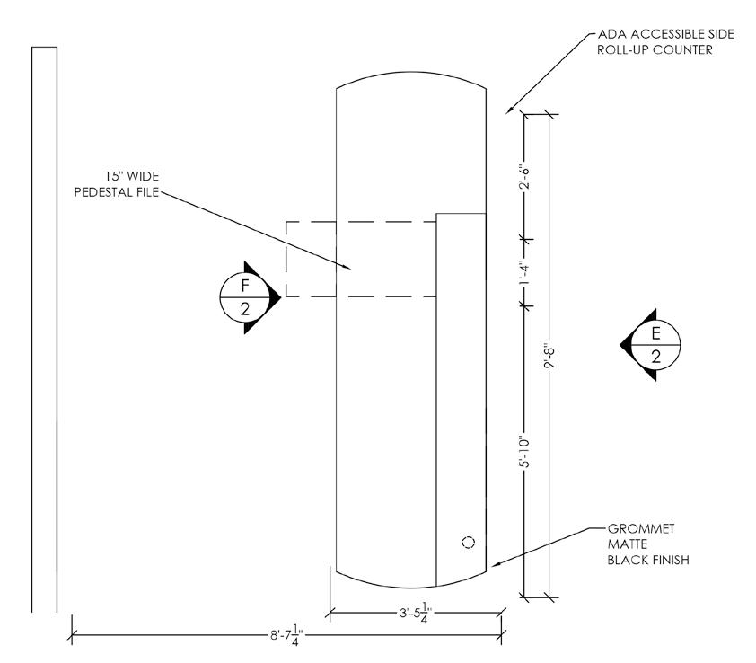 D. Agati POD Carrel | E. Agati Trapezoid Table
