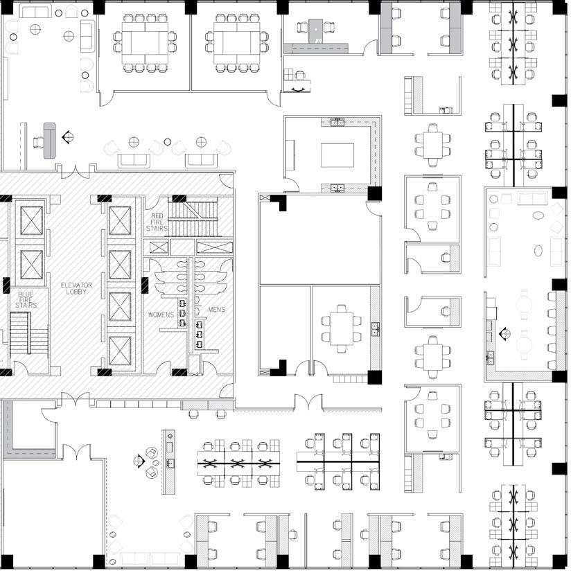 • Multiple open and enclosed working spaces