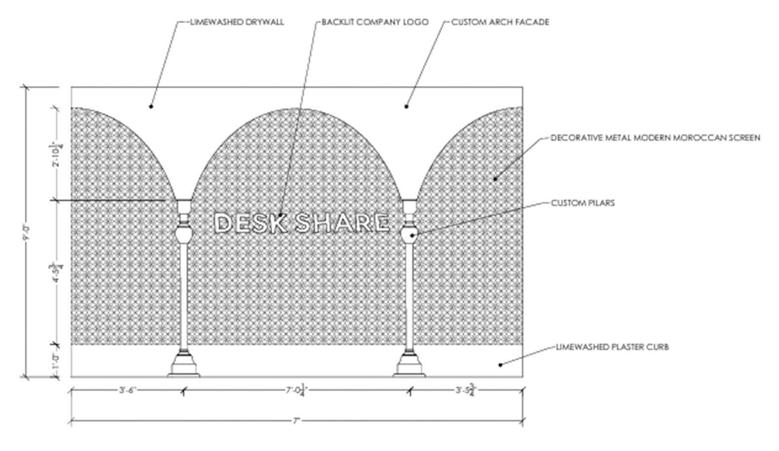 Above: Arched Logo Wall elevation produced in Autodesk AutoCAD