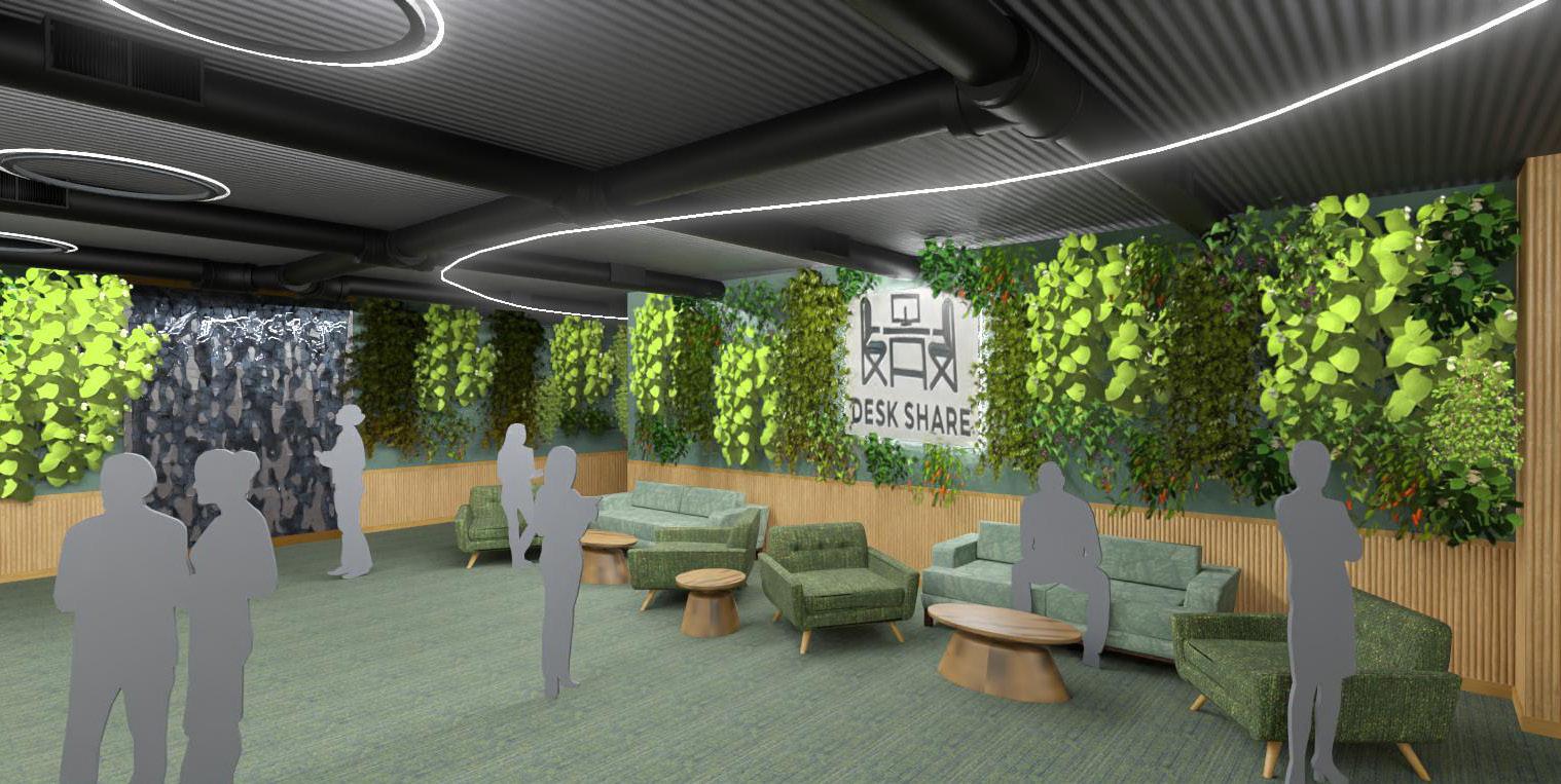 Zones of Adventure. DeskShare’s design concept is one that will inspire all who step into this space to be transported through a variety of environments and adventures including a Jungle Path, the Mountains and Alpine Lakes and finally a Bazaar in the Moroccan Desert