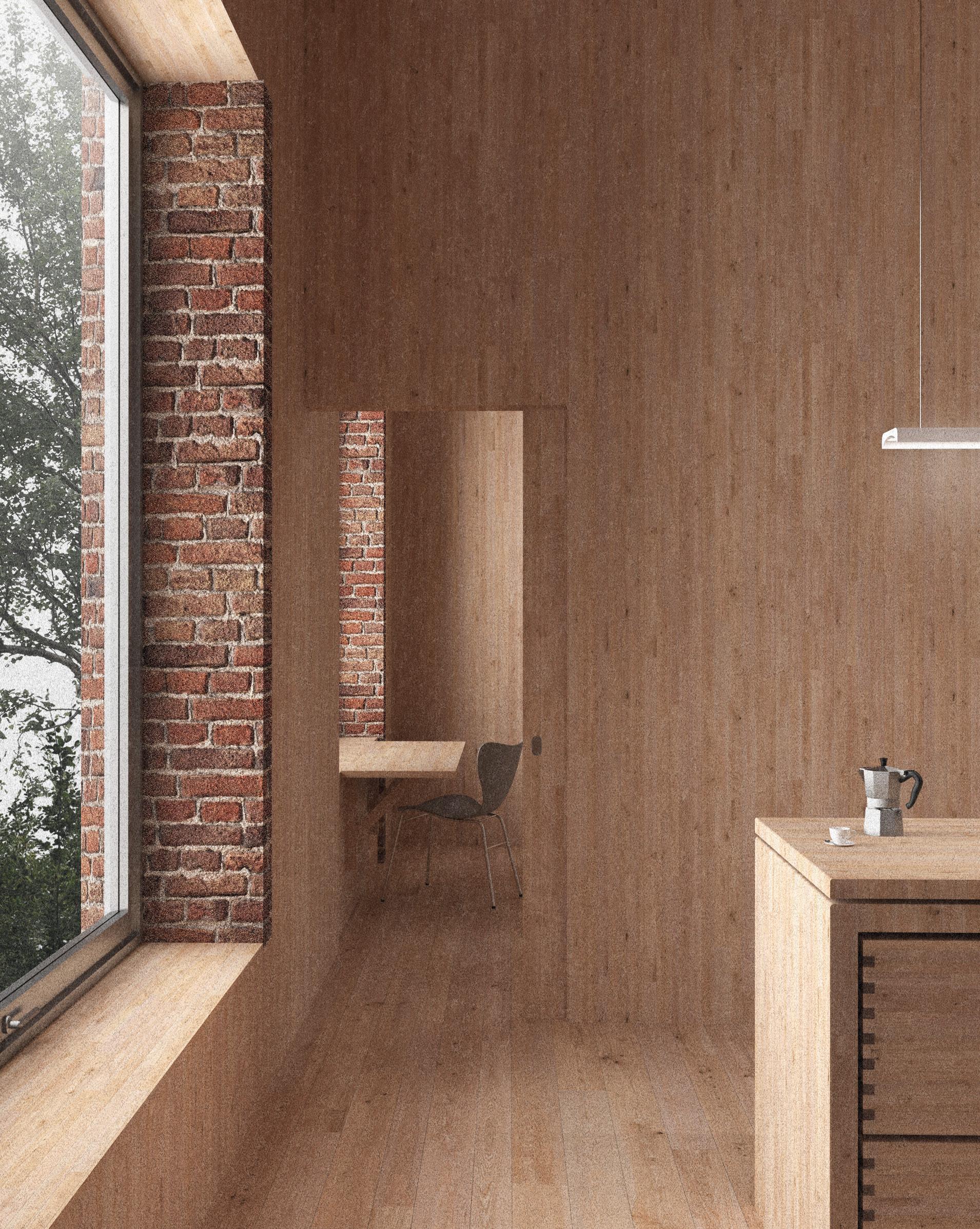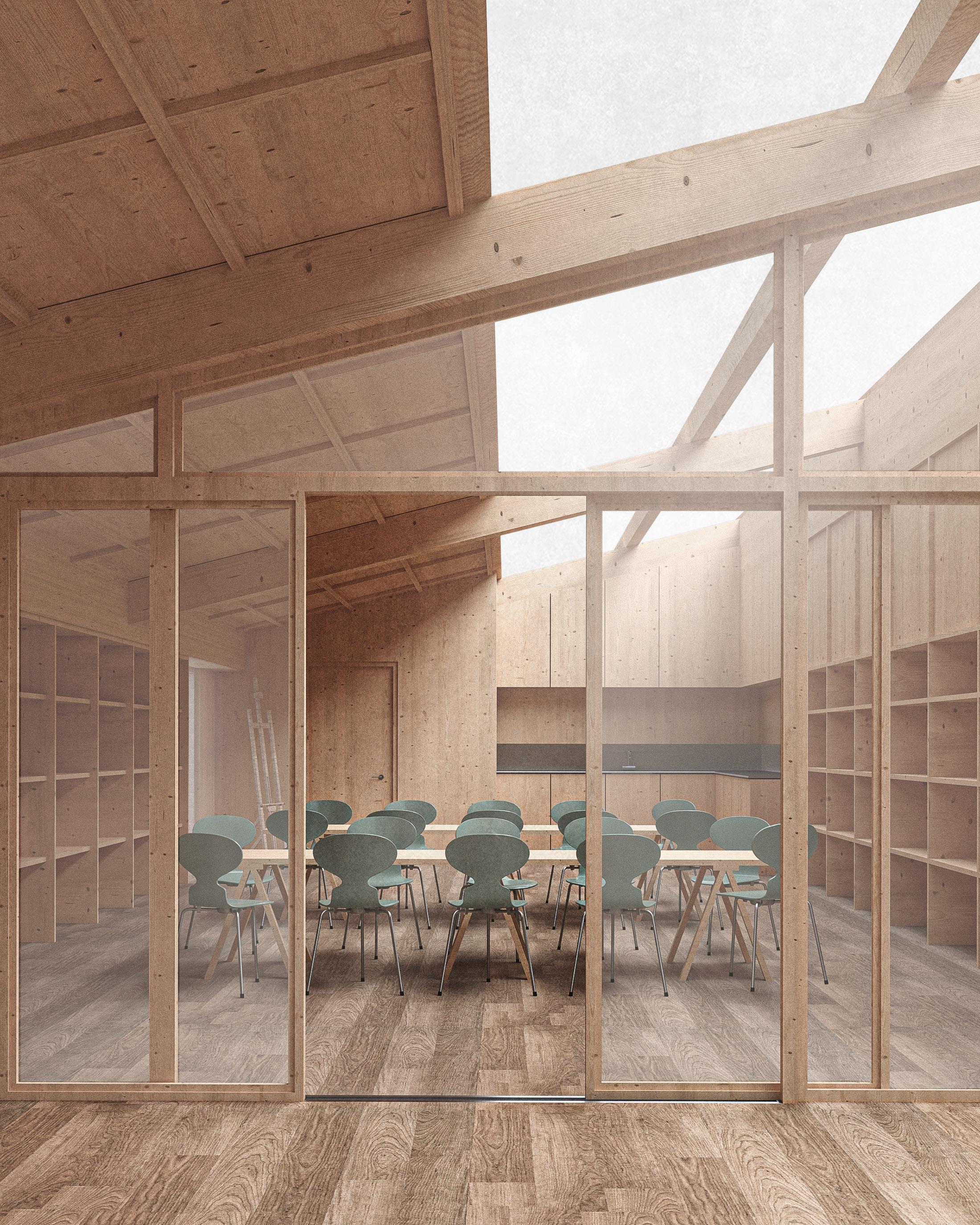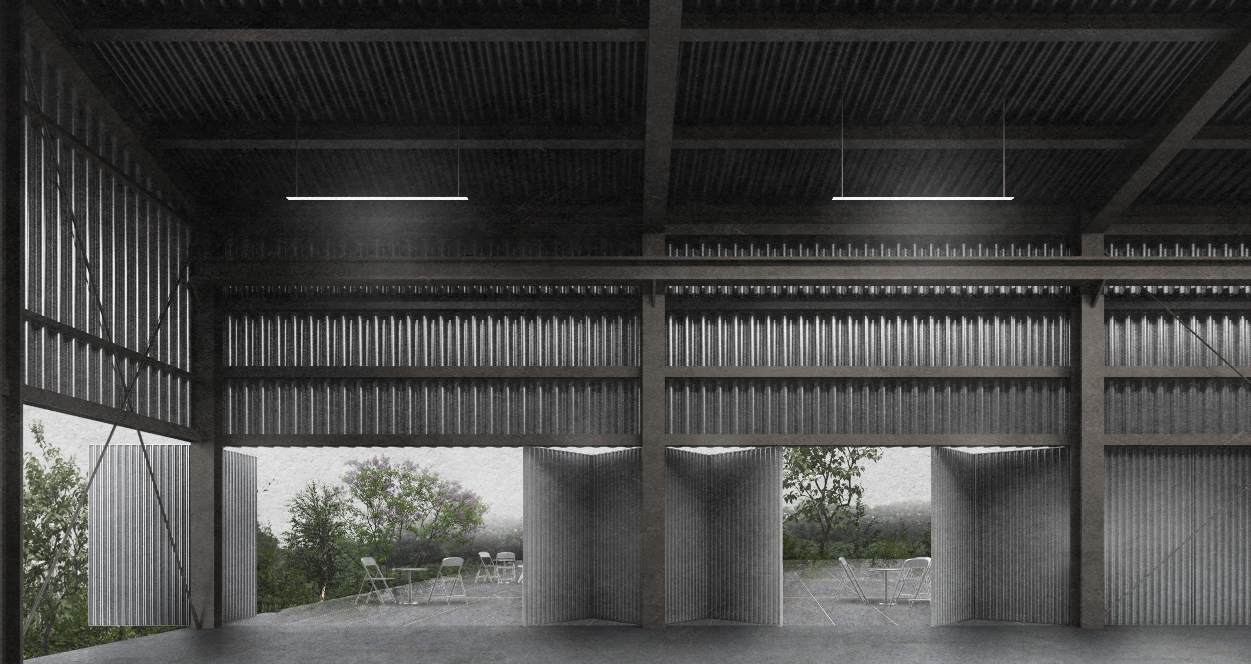 The engine hall, once a fragment of a bygone sawmill, togerher with two additional structures found on site, are revitalized to serve as a symbolic and functional space, reintroducing an overlooked artifact of industrial history to the local community and the broader region of