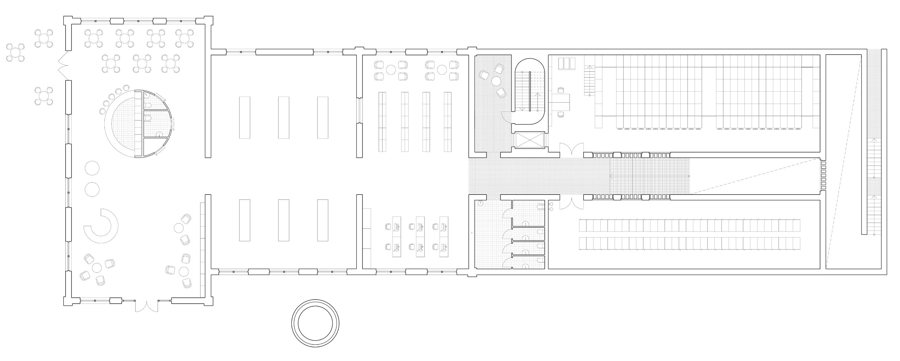 Through a process of demolition, alteration and addition, the project investigates strategies of reuse adaption of the building and structure as a whole, as well as its interior scale and materiality.