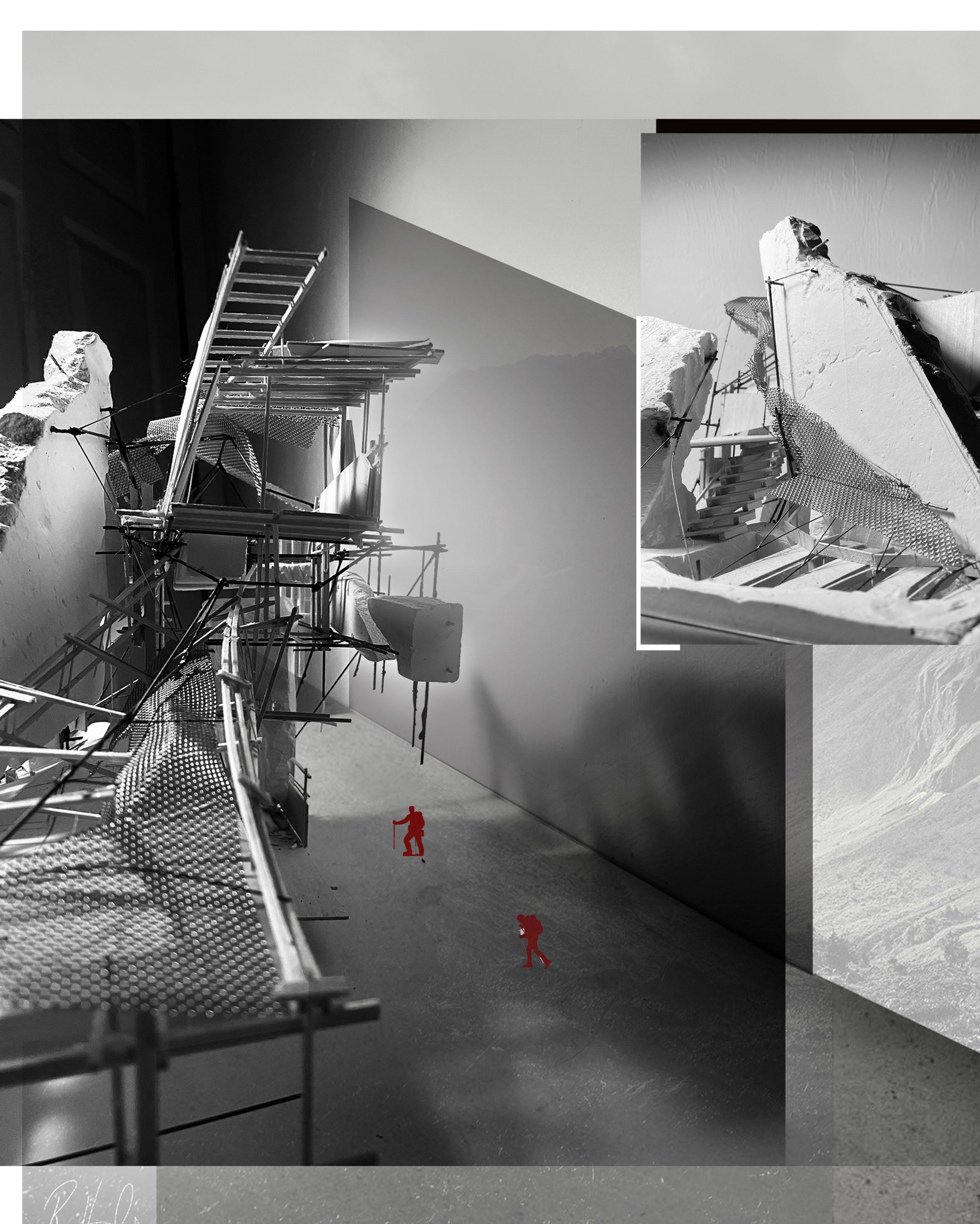 This project reimagines the cottage of Snow White and the Seven Dwarfs as a fragmented architectural intervention, where the characters are reinterpreted as adventurers inhabiting the site’s ruins.
