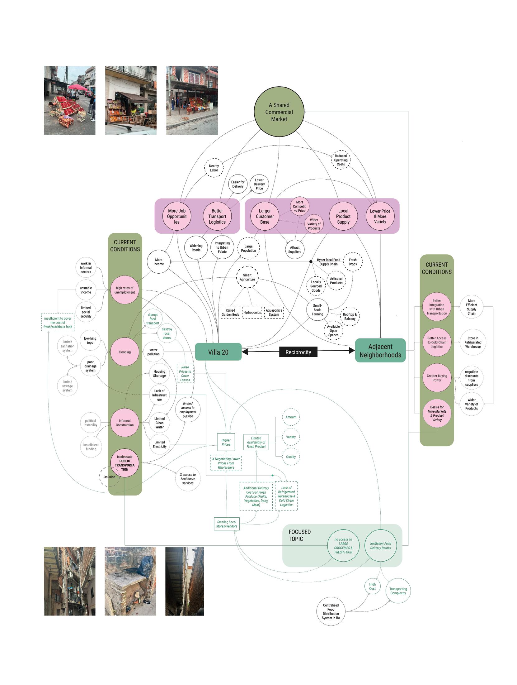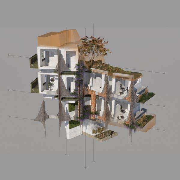 By incorporating innovative materials like hempcrete and fiber-based biocomposites, the project prioritizes durability, privacy, and ecological sustainability. Focused on fostering community resilience, the design creates a shared environment that promotes fresh food access, economic opportunity, and social engagement while responding to the unique spatial and cultural conditions of Villa 20.