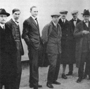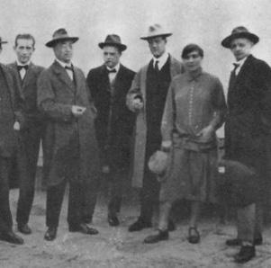 Municipal funding had also allowed Gropius to build a group of Masters’ houses in a small pinewood within walking distance of the new Bauhaus building. These consisted of three pairs of semi-detached houses with studios, each for two professors, and one detached house for himself. The ground-plans of these mirror-image semi-detached houses met at a 90° angle to each other and thus served to illustrate Gropius’ concept of the ‘large-scale building set’, even though it was not possible to use prefabricated elements in their construction. The houses, which the Masters rented from the municipal authorities, were furnished with remarkable generosity, astounding even the artists. Schlemmer wrote: “I was shocked when I saw the houses! I could imagine the homeless standing here one day watching the haughty artists sunning themselves on the roofs of their villas.” Klee later complained about the size of his heating bills, and he and Kandinsky sought to obtain a rent rebate from the municipal authorities. Some of the artists supplied their own interior colour schemes. Klee had his studio painted yellow and black; Kandinsky chose a rather eccentric decoration scheme, and even Muche experimented with colourful mural designs. Muche’s bedroom was painted to a scheme by Breuer. A contemporary visitor described the artists’ estate thus, “Everywhere the same purposeful horizontals, the same flat roofs and incisive straight lines of the frameless doors and windows, repeatedly surpassed by the glass wall of a studio. A living-machine objectively whose coldly uniform essence nevertheless incorporates, as on artistic component, the attractive play of light and shadow set in motion by the not yet grubbed trees.”