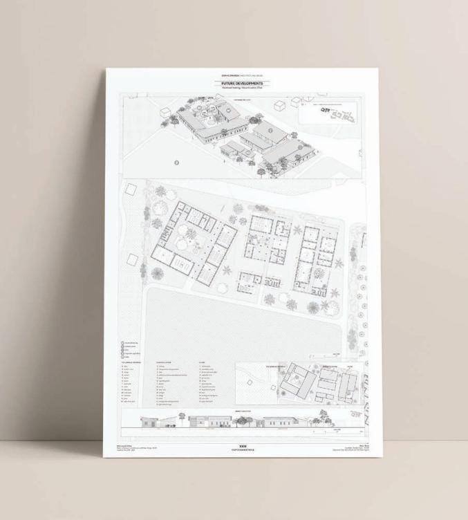 Both schools will be built in three phases. This will allow NGOs to raise funds for the frst part and begin construction, while raising funds for the second part and so on. A fourth phase will include the addition of all those corollary functions and buildings that will complement and enrich the large-scale project, creating a network of relationships and interconnections that are the basis for long-term durable solutions.