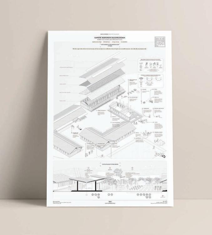 solar panels batteries panels & breakers power outlets & lighting solar energy the sun is the most uniform energy source septic tank septic drain- eld (perforated pipes and gravel trenches) phytoremediation reforestation septic toilets corrugated metal roof gutters ltration storage tank taps & sinks irrigation rain water water is collected during the rainy season cross ventilation openable windows adjustable wood screen stack e ect higher up / clerestory windows wind during the hot season winds are mainly from east and north roof overhangs covered outdoor spaces trees shading crops food waste animal waste compost & biogas system (anaerobic digestion) biogas & digestate gas stove & fertilizer livestock bedding puri ed soil waste