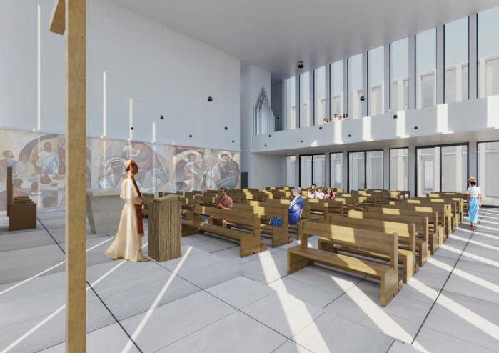 60 Frosted Glasses Clear Glasses Marble Panels Church Weekday Chaple Room for Priest Pillas Pillas Room for Catechism Room for Community