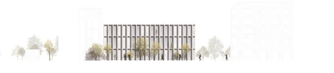 In Itinere signifca letteralmente durante il viaggio. Il progetto è un viaggio attraverso spazi con atmosfere, luci e dimensioni diverse. Questo complesso della Chiesa cattolica vuole essere concepito non solo come luogo solitario di culto di Dio, ma anche come luogo di socializzazione e inclusione, un luogo in cui conoscere se stessi e gli altri. Per questo motivo, lo spazio di culto diventa uno spazio per l’intera comunità di Piola: uno spazio capace di dare voce a voci diverse. L’edifcio comunitario comprende uffci al piano terra e un piccolo bar/caffetteria per dare accesso diretto al grande cortile sul retro del terreno. Questo spazio arricchirà non solo la qualità della vita delle persone direttamente legate al complesso ecclesiastico, ma anche dell’Università. Lo spazio del sagrato è un cortile stretto, tra l’edifcio sopra citato e la chiesa, protetto da interferenze esterne. È uno spazio lento, calmo e armonioso che ha lo scopo di preparare i fedeli all’ingresso in chiesa. Entrando nello spazio della chiesa ci si sente sopraffatti dalla luce solenne, che colpisce il suolo a strisce grazie al sistema strutturale dei pilastri. La pianta della chiesa ricorda quella della chiesa tradizionale, caratterizzata da una navata centrale e da navate laterali che si affacciano sull’abside. Lo spazio del coro si trova appena sopra l’ingresso per preparare i fedeli all’intensità dello spazio della chiesa, che è alto dodici metri. Il transetto è creato dall’asse di collegamento con la cappella feriale. I due volumi, unici ma collegati, parlano lo stesso linguaggio architettonico. Questo linguaggio unifca l’intero complesso, nonostante le differenze che caratterizzano ciascuno degli edifci. La grande fnestra a croce che illumina la cappella feriale crea un’atmosfera completamente diversa dalla navata principale: buia e intensa, che favorisce la contemplazione interiore.