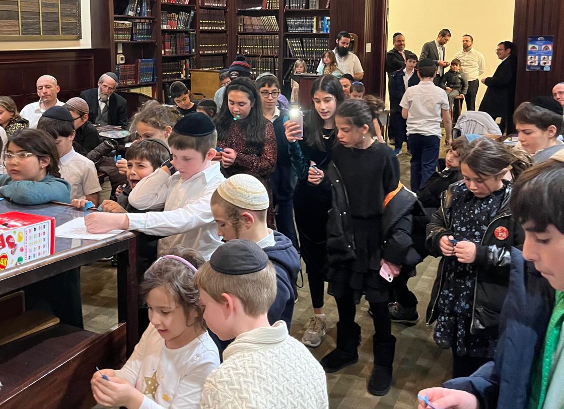 Parents and children enjoyed the Motzei Shabbos learning, one of the best years for this program. Learning, prizes, pizza, and games, what is there not to like?