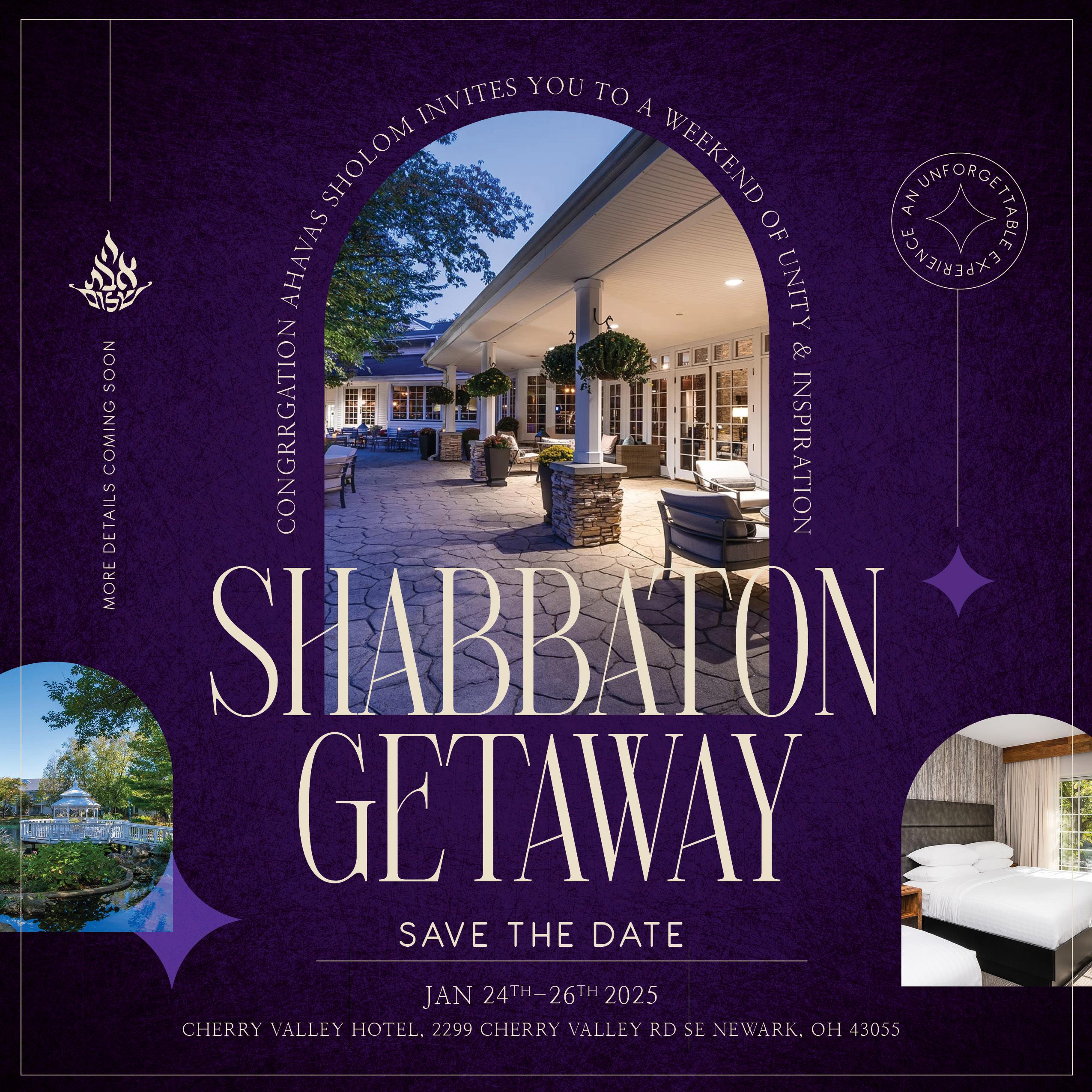 Save the date, January 24/25, for a Shabbaton retreat at Cherry Valley Lodge for an unforgettable uplifting and inspiring Shabbos. A fun family experience with an incredible children’s program.