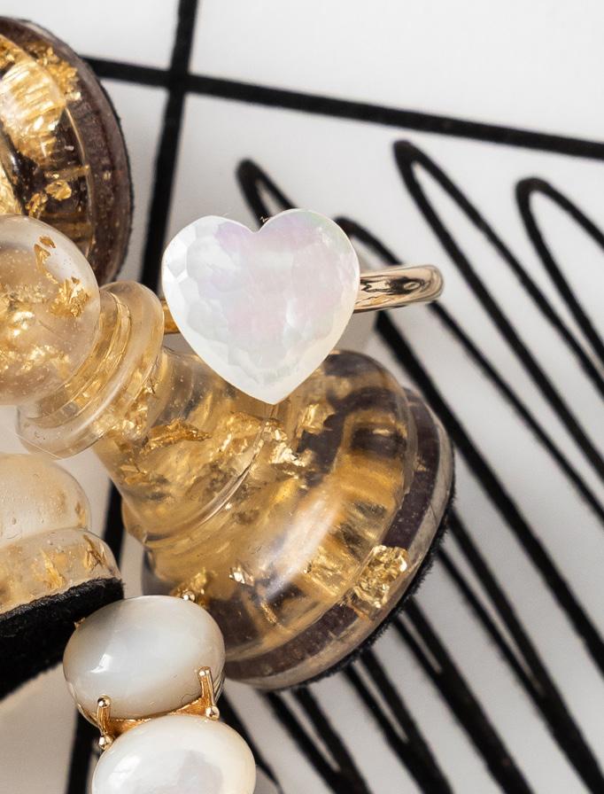 MICRO BUBBLE HEARTS 14K YELLOW GOLD + SILVER GLITTER OPAL | GOLD GLITTER OPAL RISING STAR 14K YELLOW GOLD + AQUAMARINE, CRYSTAL, MOISSANITE, MOTHER OF PEARL AND QUARTZ STATEMENT PIECE 14K YELLOW GOLD + AQUAMARINE JUMBO HEART