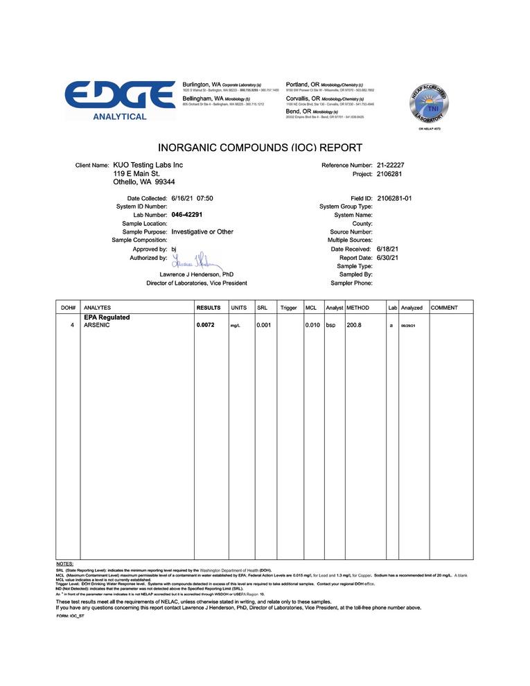 Water Quality Tests Well Info 7-01-2021