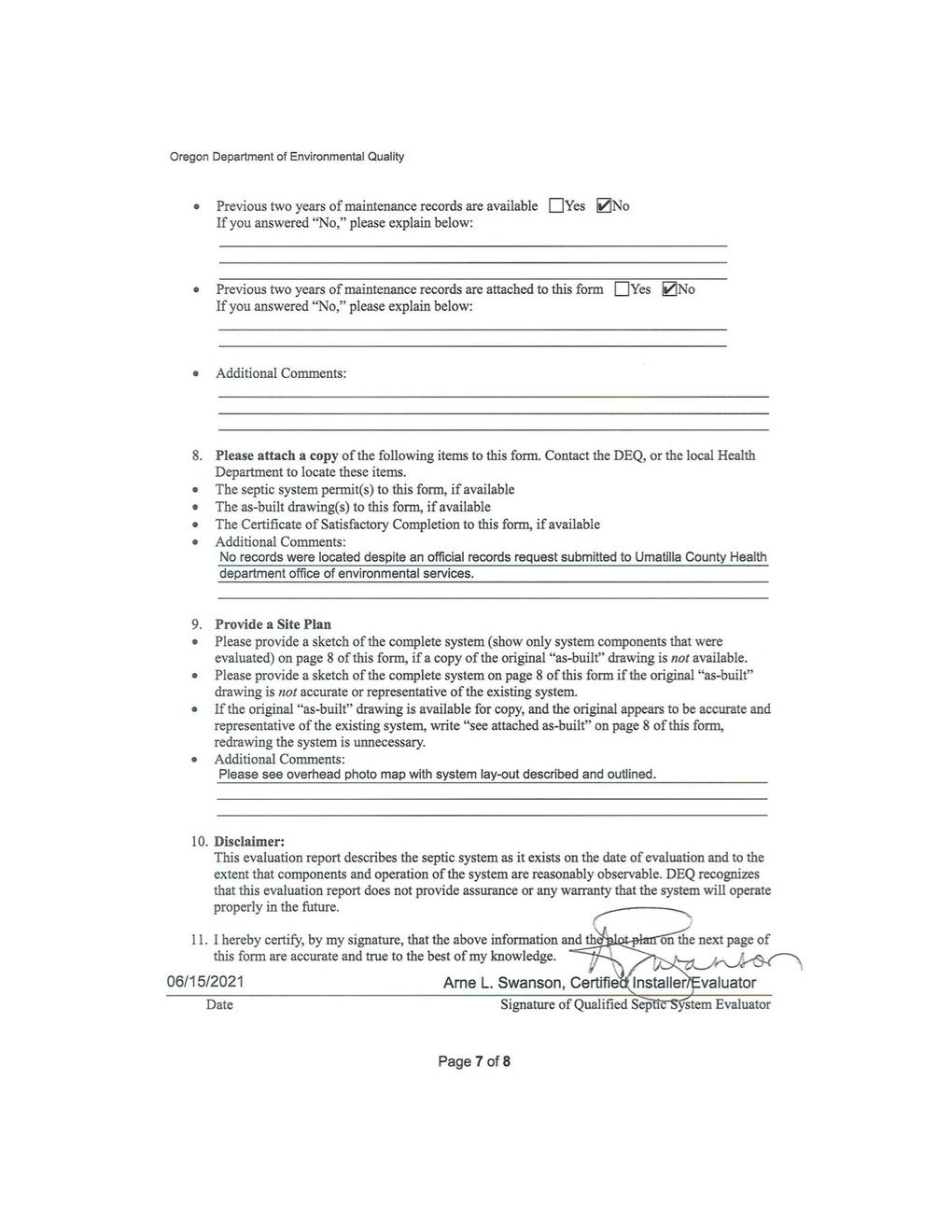 DEQ Inspection Report Septic