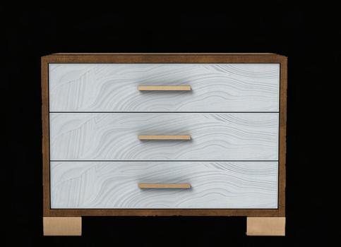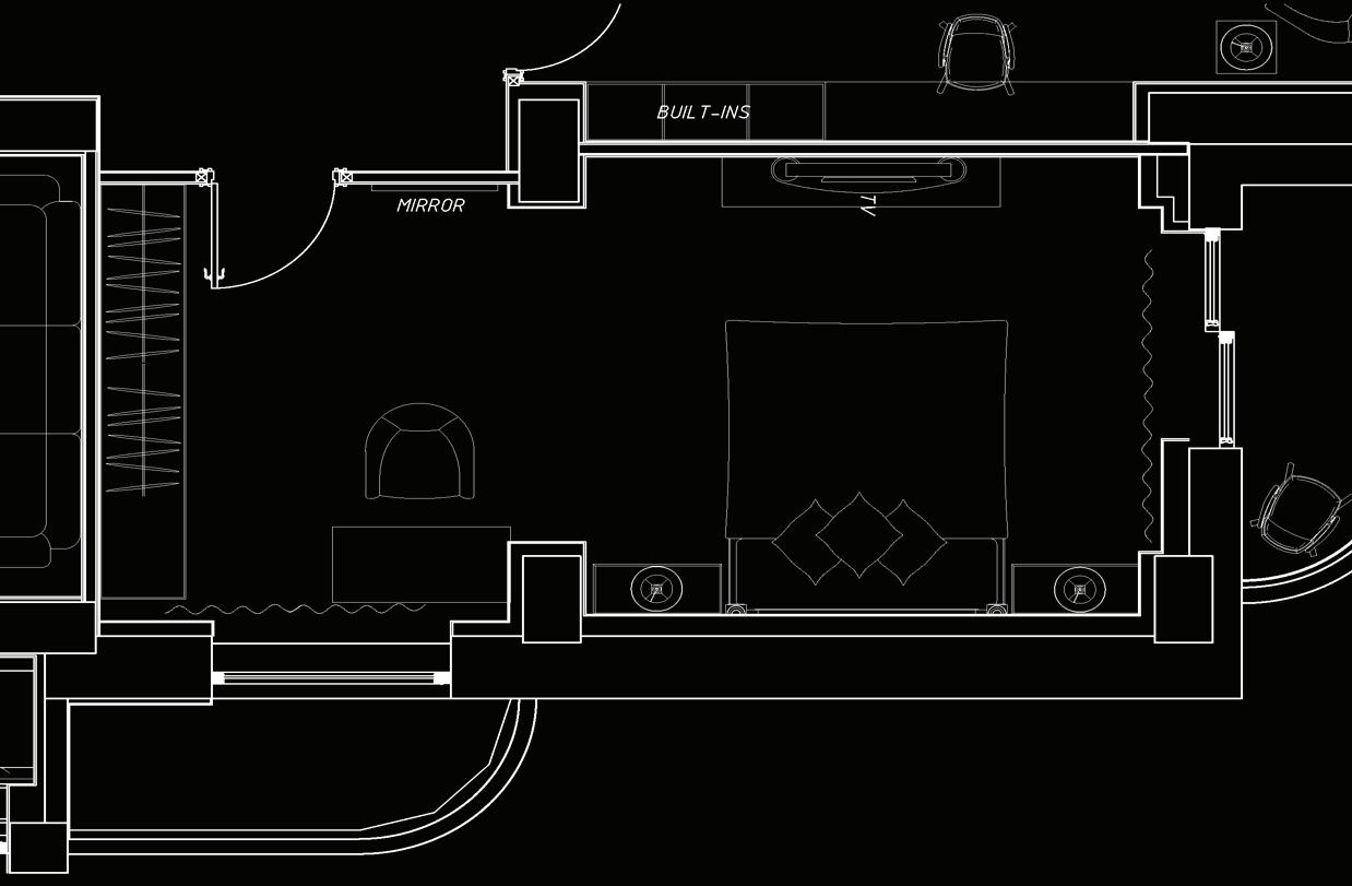 THE KRAVET DESIGN OF DISTINCTION COMPETITION INAUGURAL ASSIGNMENT REQUIRED STUDENTS TO USE TEN OR MORE FABRICS, UPHOLSTERED AND CASE GOODS, AND ACCESSORIES FROM THE EXTENSIVE KRAVET GROUP. THIS BEDROOM REMODEL CONSISTED OF HIGH QUALITY FURNISHINGS AND DURABLE MATERIALS.