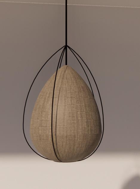 luminaire uses uniform shapes structure of the piece. Clean, create repetition to move the around the luminaire. Linen is used warm light, creating a comforting atmosphere.