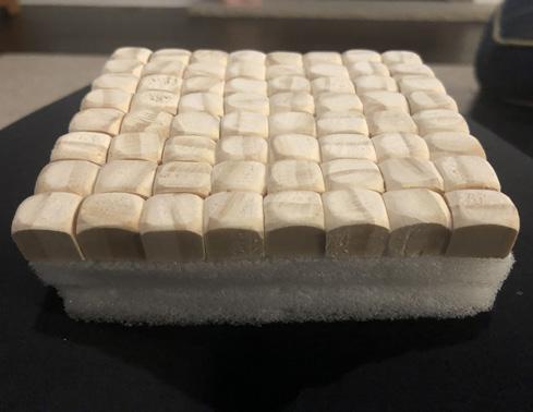 I tested out how the blocks fit and realized I needed to taper the edges of the corner ones. I then moved on to sanding the tops to be smooth.