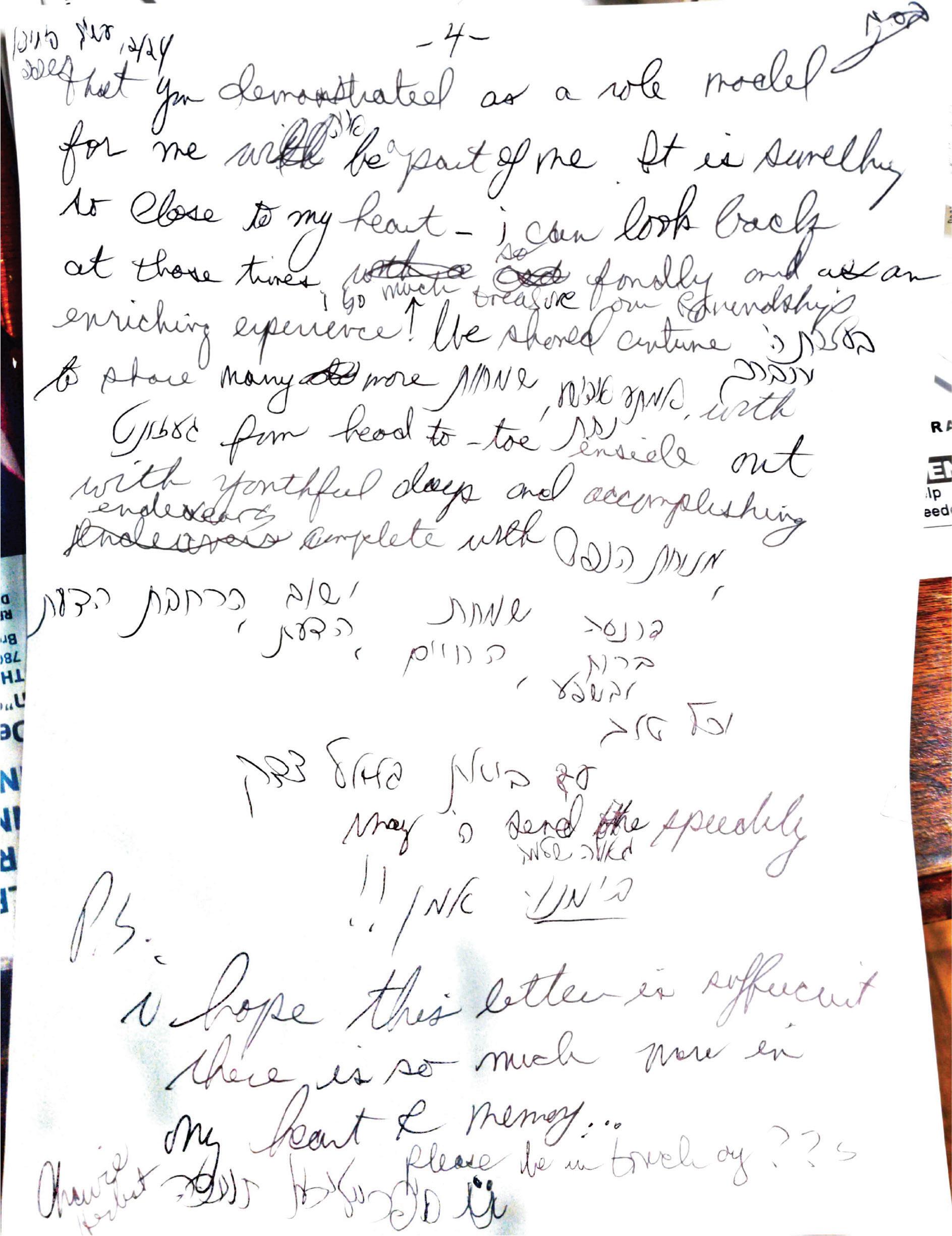 With the conclusion of my book, I would like to give over a personalized message to my family and friends. Always trust Hashem and never lose your faith. Appreciate every day to the fullest and thank Hashem for all the gifts he showers upon us.