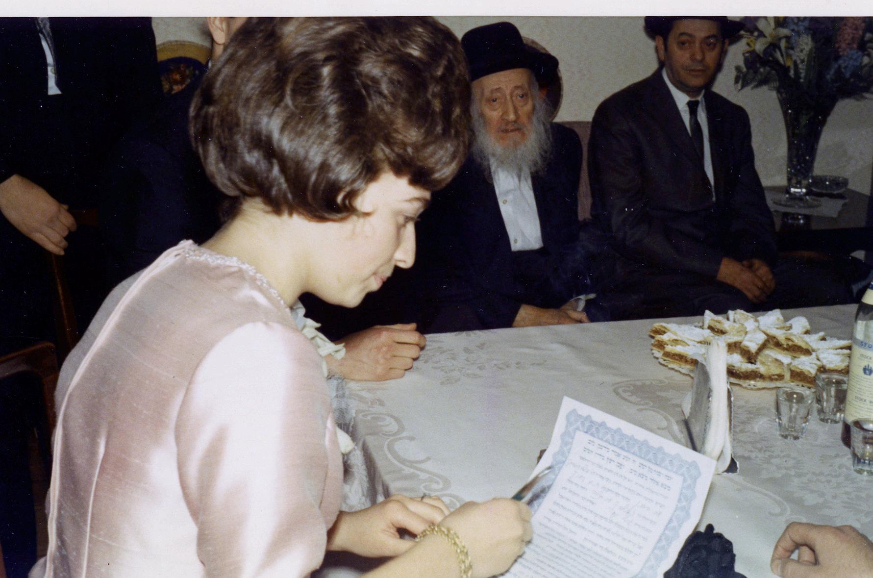 In the early 1960's we moved to a two-family home in Boro Park on 54th Street. Chaim's grandparents lived in one apartment, and my family lived in the other. We enjoyed being neighbors with them. A few years later, I was sitting on my porch, studying. I looked up and noticed a good-looking young man getting out of his car. I thought to myself, "That’s the kind of boy I want to marry." His aunt lived together with his grandparents, and she suggested the shidduch. I agreed to go out, even though I was only 17 and in high school. We dated and it got serious, but Chaim never spoke about getting engaged. He just said to me that he wants to give me a gift on Chanukah, in front of my parents, but I didn't realize that meant I was getting engaged! His parents came over that night, as well. He gave me a watch and then we got engaged! The policy at the school that I attended, Esther Schonfeld High School, was that once a student became engaged, she wasn’t allowed back into school. I didn't want to be a high school dropout, so I went to New Utrecht High School during the summer to earn my High School diploma. It was difficult to juggle all the schoolworkincluding taking two regents - date, and plan a wedding, all at the same time.