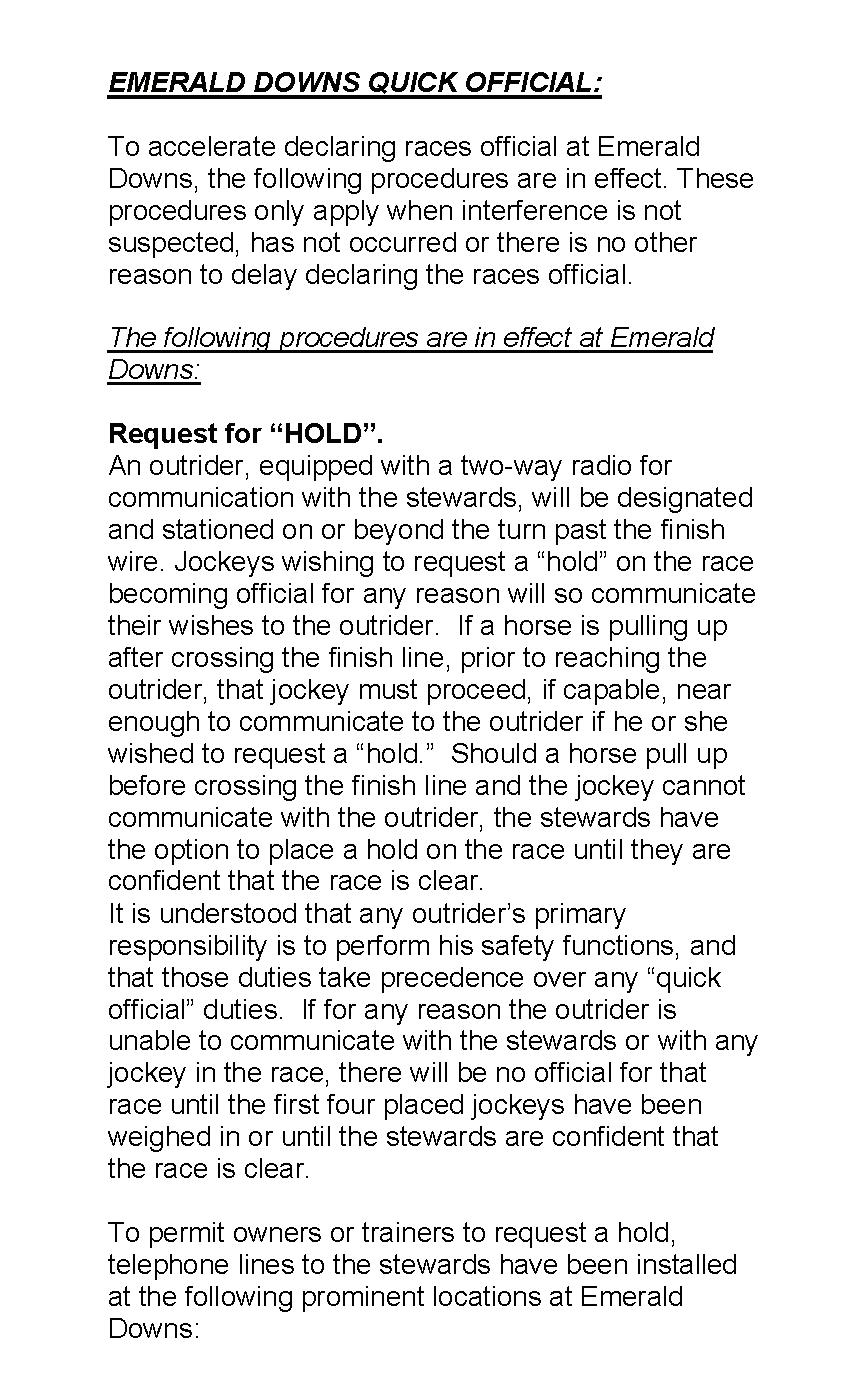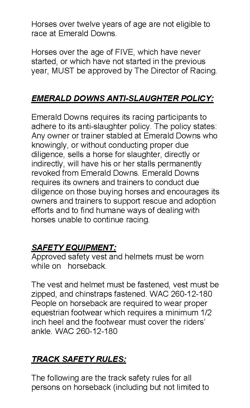 Emerald Downs Horsemen’s Liaison