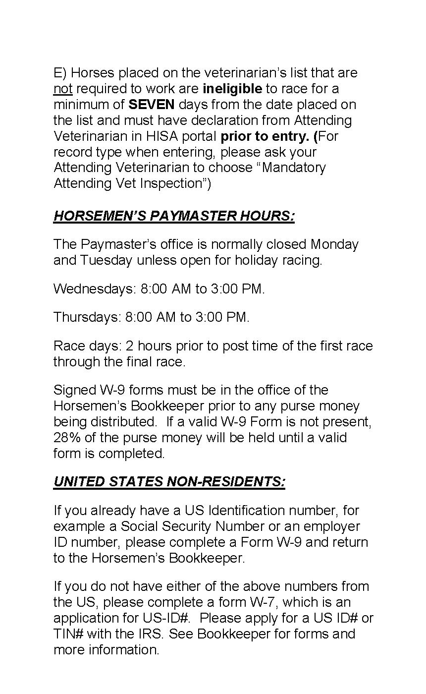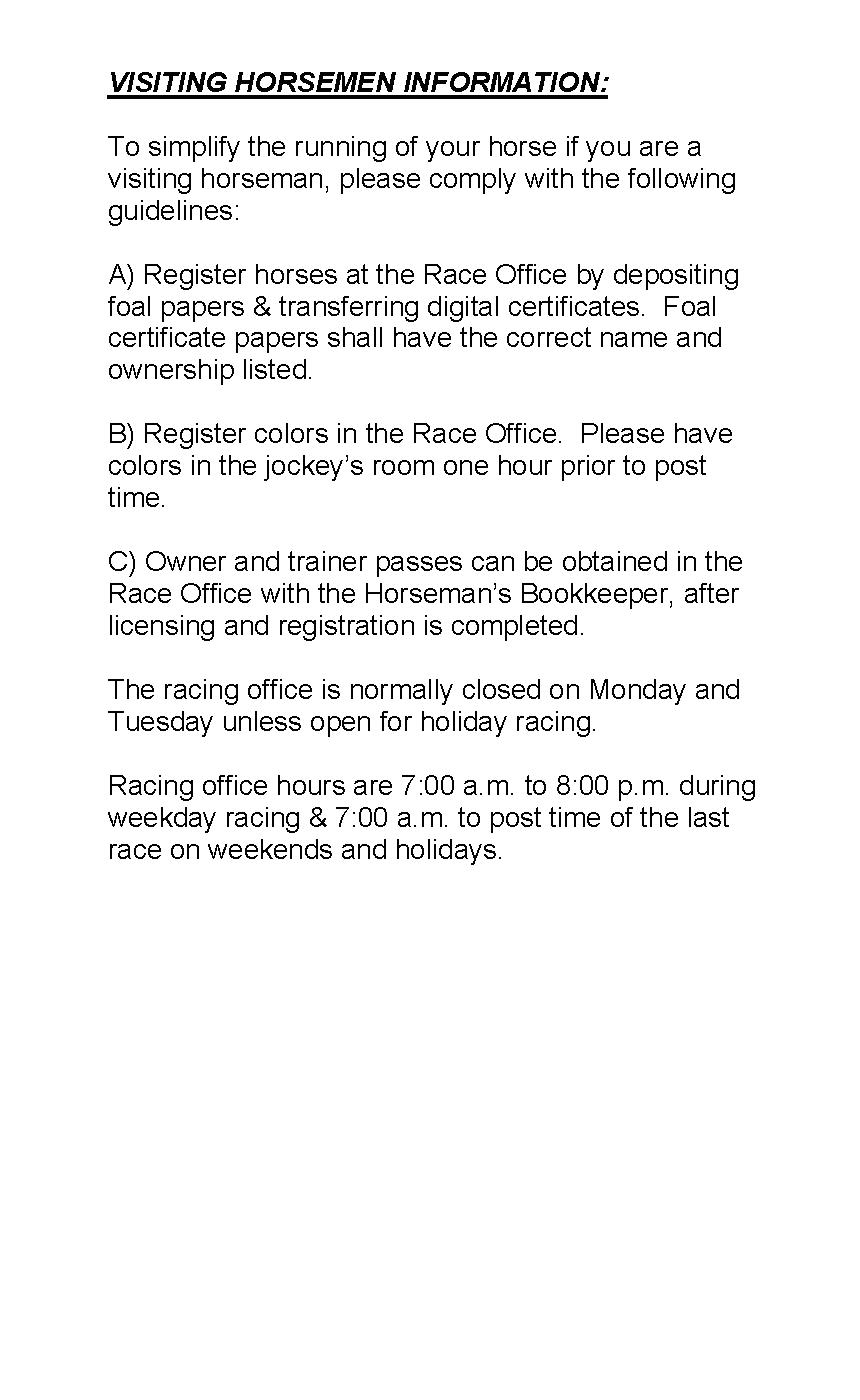 Assistance for Horsemen on Race Day, Licensing, Guest Passes, Reservations for Dining, Box Seats and Hotels (253) 288-7753