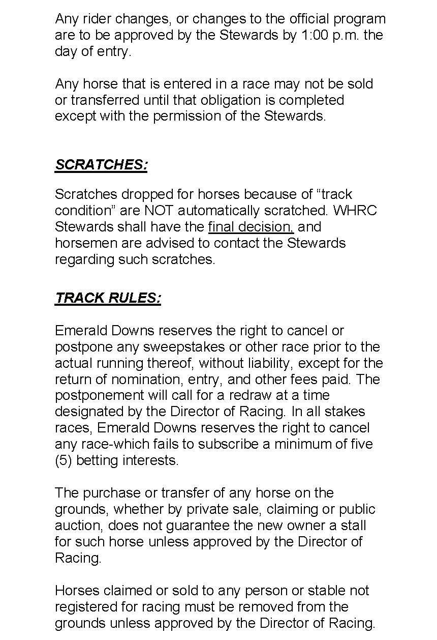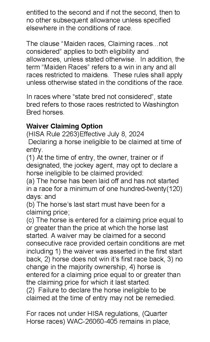 • The horse must be a Washington-bred.