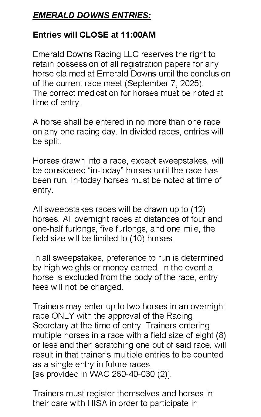 (Washington Breds Which Have Won an Open Starter Allowance Race at Emerald Downs in 2025 remain eligible)