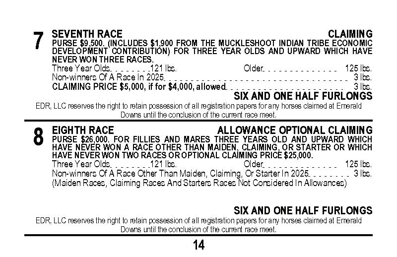 • $1,000 WaHIP Owners’ Incentive Bonus* if a Washington-bred horse breaks its maiden at Emerald Downs in a maiden claiming $25,000 or more race.