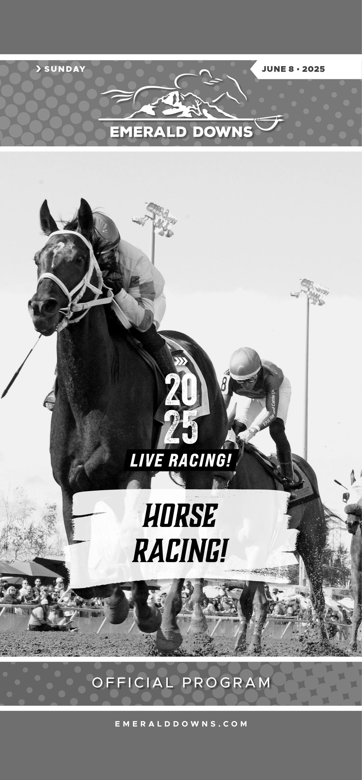 Stay in touch with us on our web site and on social media. Enjoy your Sunday afternoon at Emerald Downs!