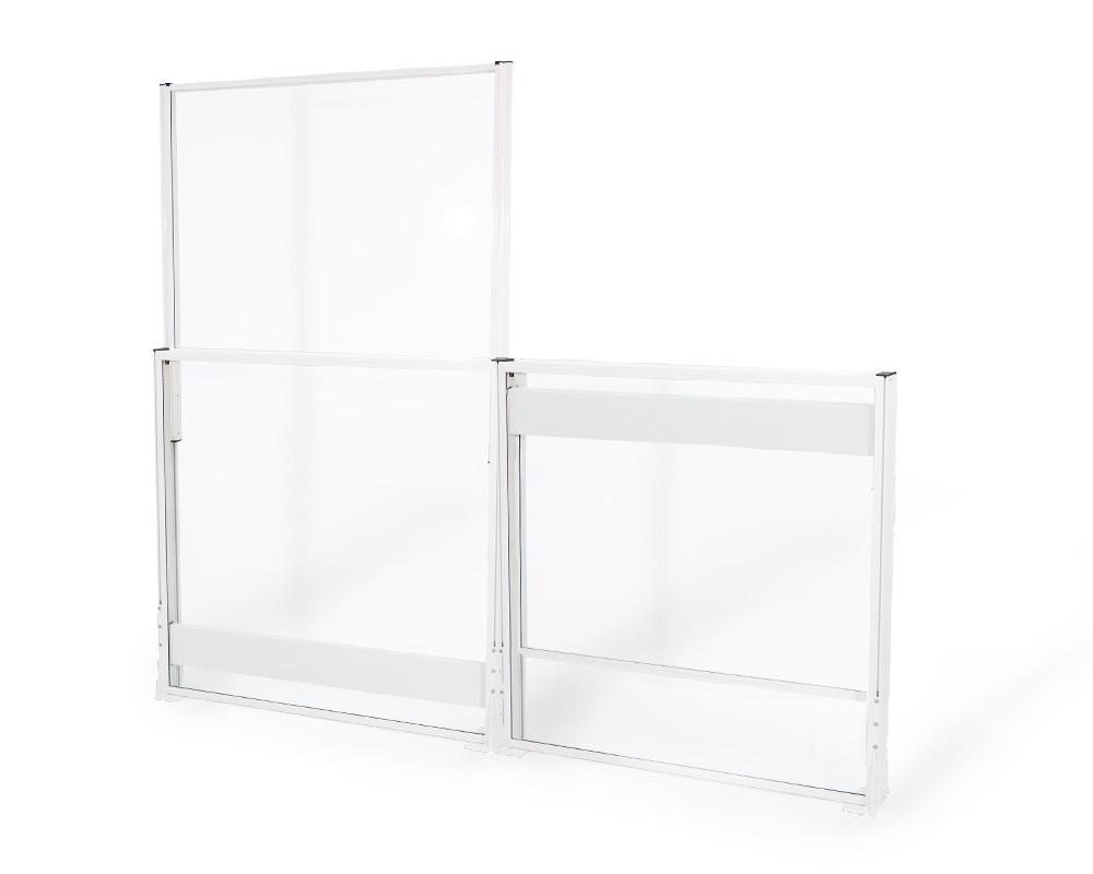 • Golvfästen: Varje glas fästs i två golvfästen i aluminium – antingen utanpå eller ovanpå underlaget.