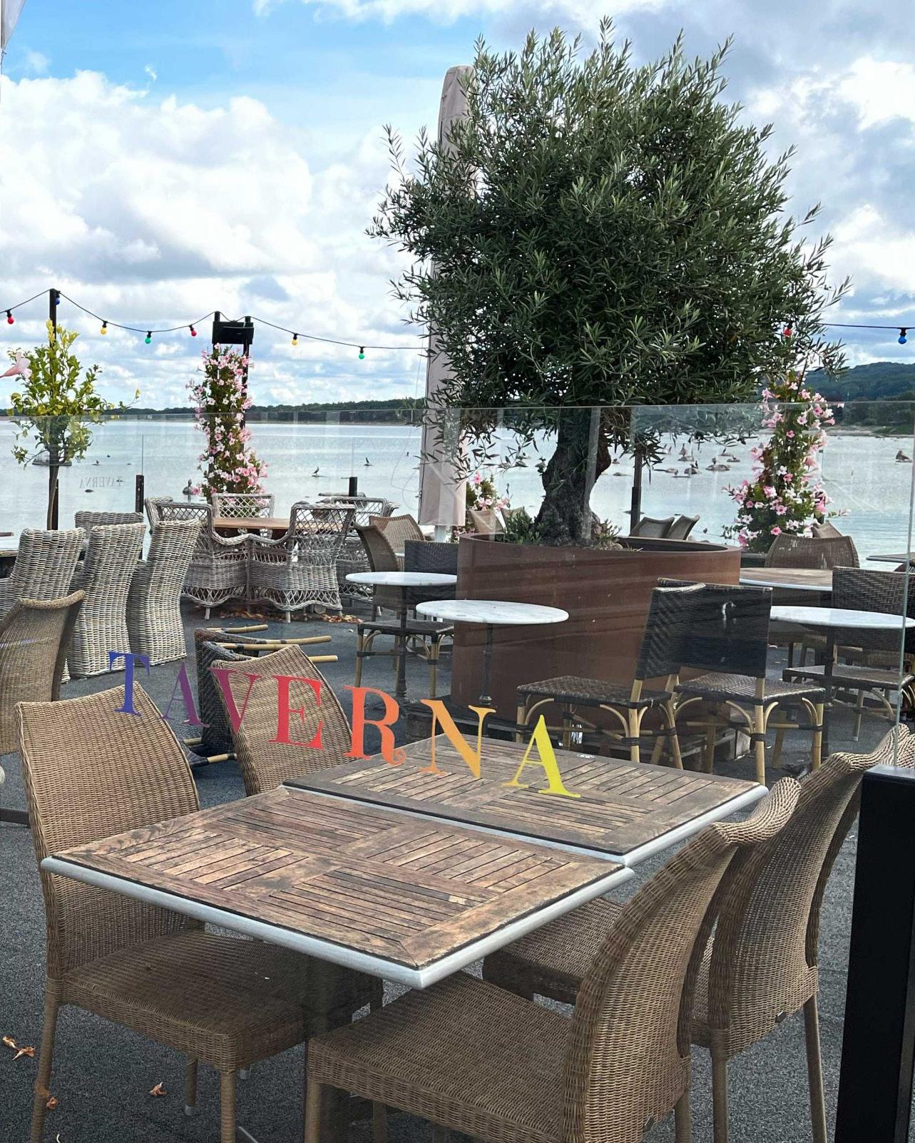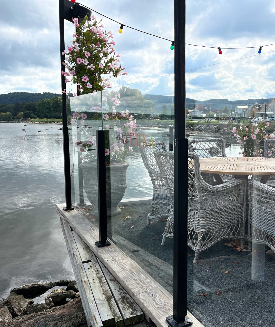 ALU MODERN. Det moderna glasräcket för den stilmedvetna som tillåter maximalt med utsikt då glasytorna är större än andra räcken. Här har kunden valt svarta stolpar med extra höga glas (1400mm) som snyggt ramar in uteserveringen, men som inte blockerar den härliga utsikten.