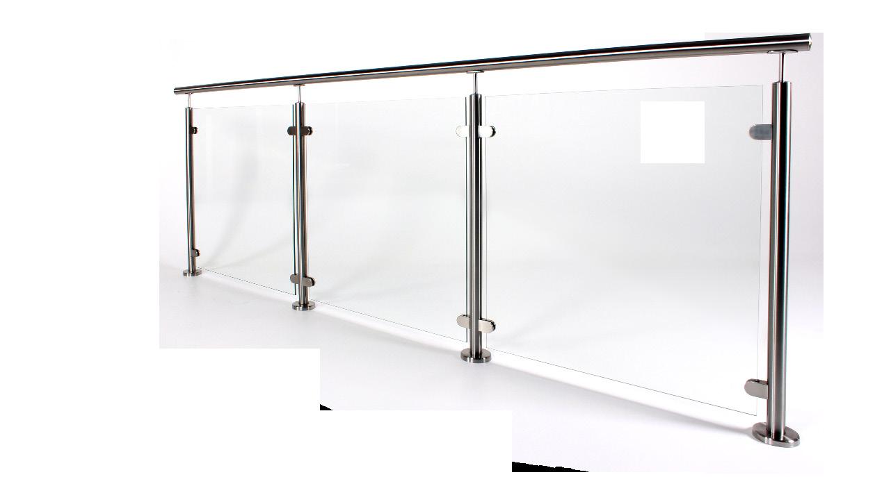 ROSTFRITT GLASRÄCKE MED ÖVERLIGGARE