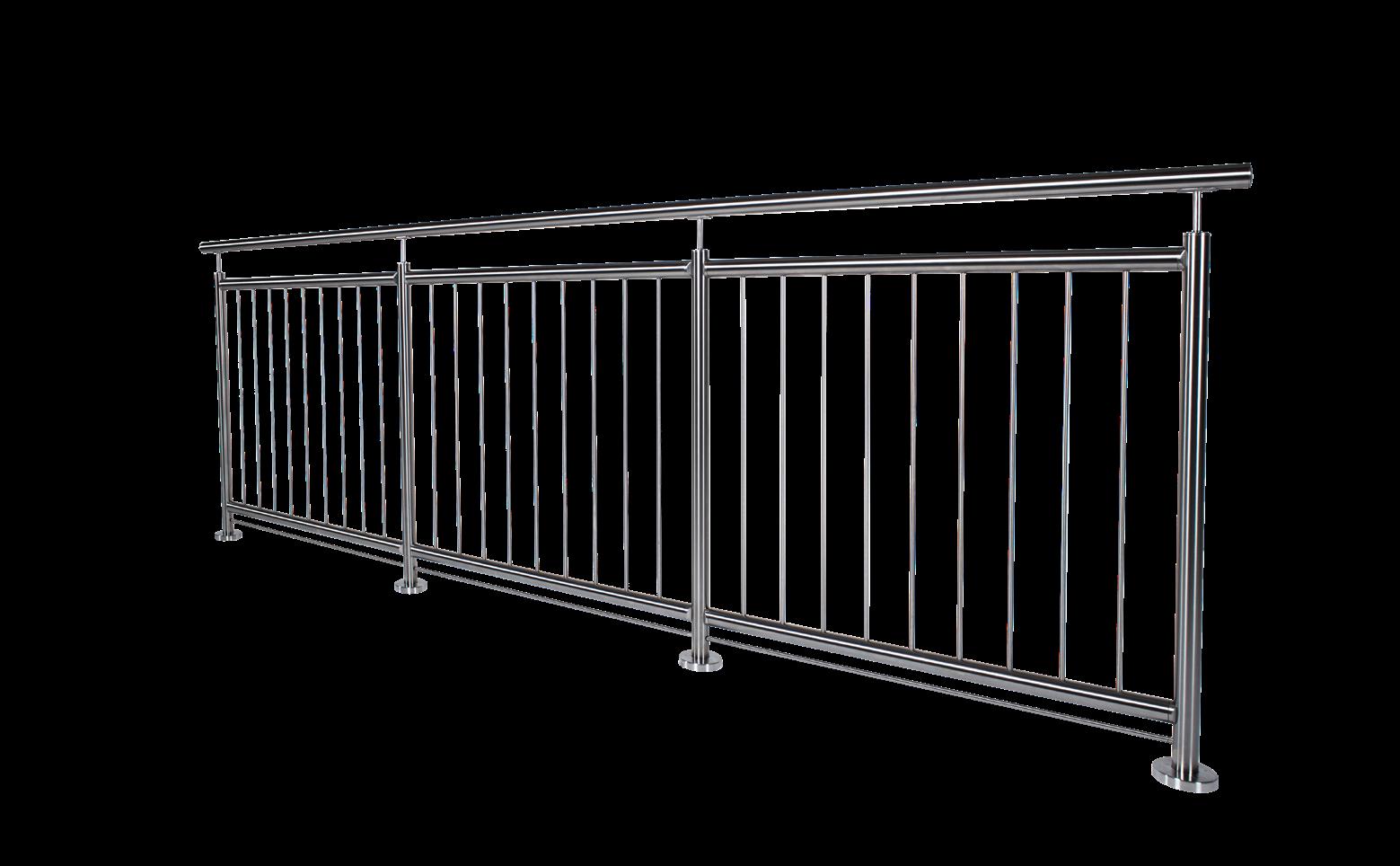 Modernt stålräcke med vertikala stänger är ett räcke som passar i de flesta miljöer. Rostfritt räcke med vertikala stänger har alltid en överliggare.