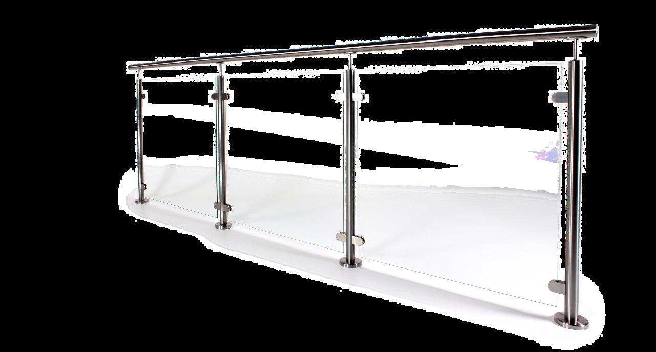 ROSTFRITT GLASRÄCKE MED ÖVERLIGGARE