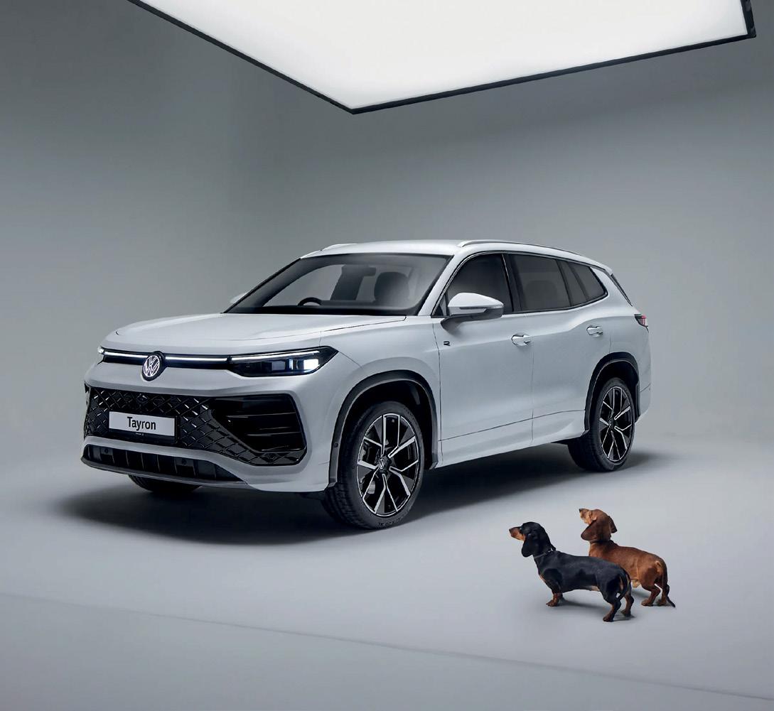 From the side, you’ll notice the Tayron has just a little bit of stretch. Why? Because that’s where we’ve put the two extra seats. An extra back row to use whenever or for whomever. And when you don’t need them, they fold away, giving you 850L of boot space for... whatever.