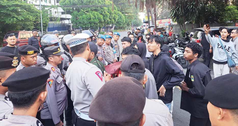 Cekcok terjadi lantaran keingi nan mahasiswa untuk menyampaikan penolakannya terhadap Rancangan Undangundang (RUU) TNI-Polri secara langsung ke Presiden RI Joko Widodo (Jokowi) dihalangi oleh aparat kepolisian. Sebagian peserta aksi yang menembus barikade kawat berduri secara diam-diam dan berorasi di Jalan Pengadilan. Mereka didorong personel kepolisian untuk kembali ke titik demonstrasi di Jalan Sudirman. Adu mulut, aksi dorongdorongan, dan kejar-kejaran antara mahasiswa dan polisi pun tak terhindarkan. Massa aksi akhirnya dipaksa mundur oleh puluhan petugas