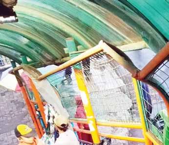 atap masih dibiarkan bolong. Pengguna masih akan kehujanan atau kepanasan jika melintasi JPO tersebut. Jembatan ini sebetulnya sudah masuk dalam rencana renovasi dari Dishub Kota Bogor. Namun, hal itu masih dalam tahap penyusunan rencana. Dishub masih m enunggu skema penganggaran