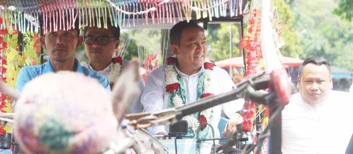 tradisional, delman. Pasangan ini turut diantar 300 relawan pendukung yang datang dari kalangan masyarakat, partai pengusung, dan 4 partai pendukung yakni Partai Bulan Bintang, Partai