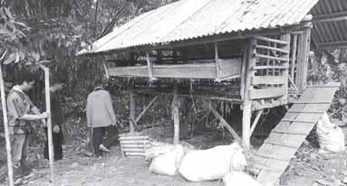 HATI-HATI: Pemilik ternak memperlihatkan kondisi kandang yang kosong, karena semua ternak dicuri dan hanya ditinggalkan ususnya.
