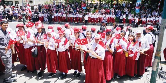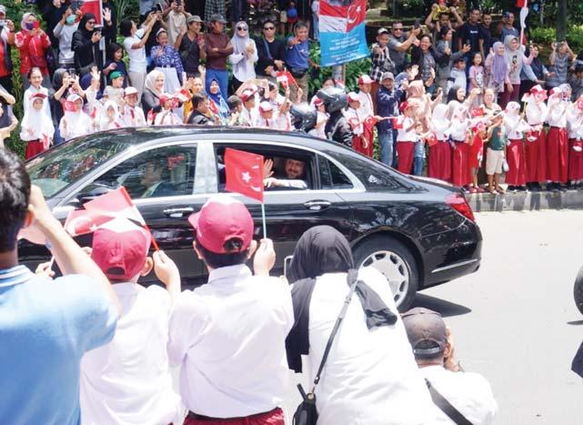 nomor satu di Negara Turki itu. Warna dan corak kaos yang mencolok membuat mereka menjadi pusat perhatian banyak orang. Meski harus berdiri lebih dari 2 jam, Isaka dan keluarganya tetap tampak semangat menanti iring-iringan Tamu Negara itu tiba di Istana Bogor. Kesabaran dan antusias itu pun rupanya berbuah manis. Isaka dan keluarganya mendapat balasan senyuman dari Erdogan saat melintas di Jalan Jalak Harupat sembari melambaikan tangan menyapa warga.