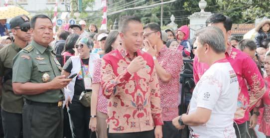 yang dikemas dalam Bogor Street Festival (BSF) 2025, Rabu (12/2) kemarin, berlangsung seru dan meriah. Berlangsung di sepanjang Jalan Suryakencana hingga Siliwangi. Dalam kegiatan tersebut, melibatkan dari berbagai unsur. Satu diantaranya Bank Mandiri. Kali ini berpartisipasi dengan mengelar Festival Cap Go Meh Suryakencana. PIC Kegiatan, Helmy Hadiprabowo mengatakan, Festival Cap Go Meh Suryakencana di lakukan sebagai bentuk dukungan Bank Mandiri terhadap pelaksanaan BSF 2025 sebagai salah satu kegiatan besar yang dilaksanakan di Kota Bogor. “Partisipasi kami ikut