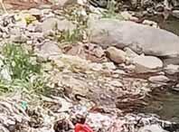 menumpuk di bawah jembatan. Sampah itu terbawa oleh banjir yang terjadi kemarin.