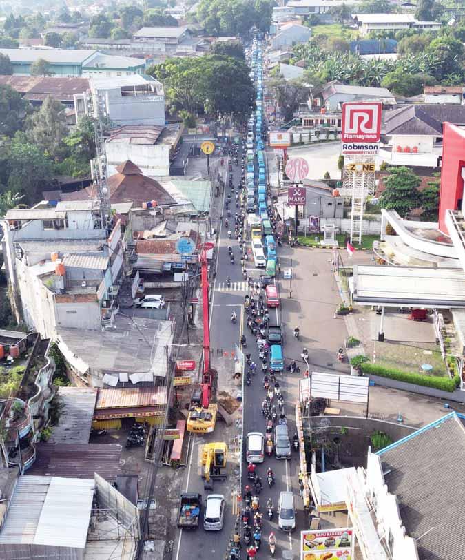SEGERA RAMPUNG: Kondisi kemacetan di Jalan Raya Tajur imbas revitalisasi Jembatan Cibalok.