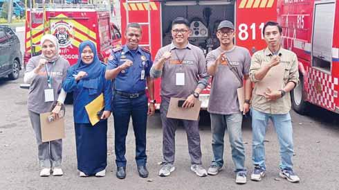 Tim juri Bogorku Bersih foto bersama Sekretaris Dinas Damkar dan Penyelamatan Kota Bogor, Teofilo Patrocinio di depan armada damkar.